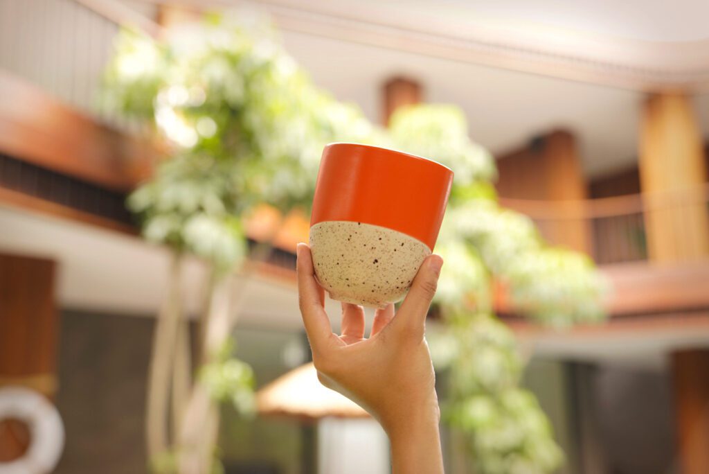 The gifted Terracotta mug was inspired by the sunny days BOSS’ guests will experience while enjoying their time within the BOSS House. Enveloped with volcanic red clay covering most of the form, the bottom is a stunning neutral speckle. This juxtaposition captures one’s eyes and the essence of the BOSS House Bali. Another collaboration that will partake in this campaign is Kevala Ceramics x Sara Howard made of waste pieces. Sara is an award-winning ceramic designer and materials researcher, whose practice is focused on reducing the environmental and societal impacts of ceramic production. Crafted from waste, this collection of tableware celebrates the symbiotic relationship between material and sustainability.